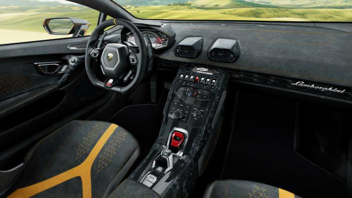Στην νέα Performante, η οποία είναι κατά 40 κιλά ελαφρύτερη από την απλή Huracan, έχουν χρησιμοποιηθεί ενεργάαεροδυναμικά βοηθήματα, φτιαγμένα από το υλικό που η Lamborghini ανακοίνωσε με ειδικό βίντεο και ονομάζει carbon fiber composite. Σύμφωνα με την εταιρεία, χαρακτηριστικά, η πίσω πτέρυγα βελτιώνει την απόδοση φρεναρίσματος και στροφών κατά 750%, σε σχέση με την απλή Huracan!