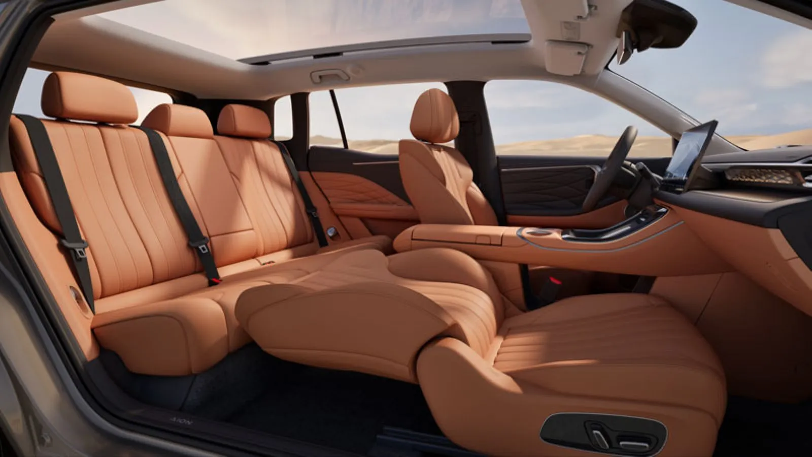 Η «ωφέλιμη» απόσταση σταθεροποιείται στα 1.040 mm, επίδοση που συγκρίνεται άμεσα με οχήματα της πολυτελούς κατηγορίας, όπως η Mercedes-Benz GLE ή η Porsche Cayenne. Με το κάθισμα συνοδηγού μετακινημένο στο εμπρός άκρο, ο πίσω επιβάτης απολαμβάνει σχεδόν 1,10 μ. διαθέσιμο χώρο ποδιών — μια πραγματική αίσθηση «καναπέ».