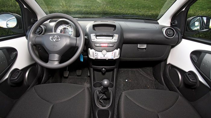 Ποιοτικό είναι το εσωτερικό του Aygo, με ποιοτικά υλικά να απαρτίζουν το ταμπλό. Οι επιβάτες των εμπρόσθιων καθισμάτων κάθονται άνετα, δεχόμενοι επαρκή πλευρική στήριξη από τα καθίσματα. Σημαντικές παραχωρήσεις δεν πρόκειται να κάνουν ούτε οι πίσω επιβάτες, τόσο για τα γόνατα τους, όσο και για τα κεφάλια τους.
