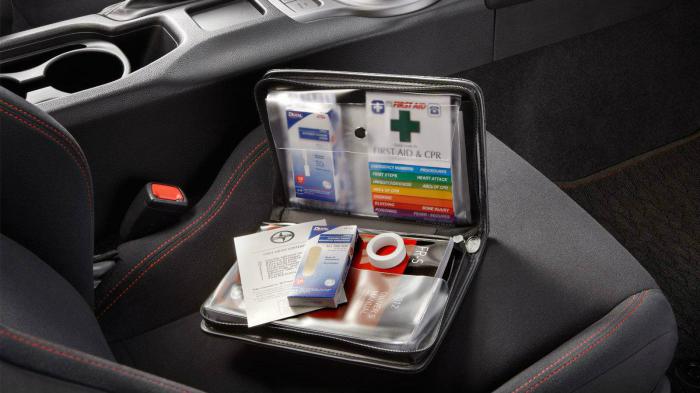 Κουτί πρώτων βοηθειών. Ο λόγος; Προφανής. Από το πιο απλό παυσίπονο για έναν ενοχλητικό πονοκέφαλο που δεν σας επιτρέπει να είστε ο εαυτός σας στο τιμόνι, μέχρι την αντιμετώπιση κάποιου εγκαύματος. Κανείς δεν μπορεί να προβλέψει τι θα χρειαστεί και για ποιο λόγο ακριβώς, γι αυτό και εμείς προτείνουμε το κουτί σας να έχει τα εξής: Οινόπνευμα, βαμβάκι, γάζες και επιθέματα, επιδέσμους, φυσιολογικό ορό, ψυκτικό σπρέι, χάπια παυσίπονα και αντιφλεγμονώδη, στικ για τα τσιμπήματα, αυτοκόλλητα ράμματα και δραμαμίνες. Φυσικά να τονίσουμε πως ανά τακτικά χρονικά διαστήματα να ελέγχετε όλα τα παραπάνω για ημερομηνία λήξης.