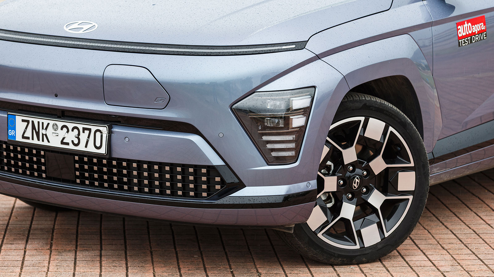 Σχεδιαστικά, το νέο Hyundai Kona Electric ακολουθεί τη φρέσκια γραμμή της δεύτερης γενιάς του μοντέλου, με έντονες ακμές, δυναμικές αναλογίες και τη χαρακτηριστική σιλουέτα. Το εμπρός μέρος ξεχωρίζει χάρη στο λεγόμενο Seamless Horizon Lamp, τη λεπτή φωτεινή λωρίδα που εκτείνεται σε όλο το πλάτος του καπό, δημιουργώντας φουτουριστική αίσθηση. Οι κλειστές γρίλιες, χαρακτηριστικό των ηλεκτρικών εκδόσεων, δίνουν πιο «καθαρή» όψη, ενώ οι λεπτομέρειες στον προφυλακτήρα διαφοροποιούνται διακριτικά από τις θερμικές εκδόσεις.