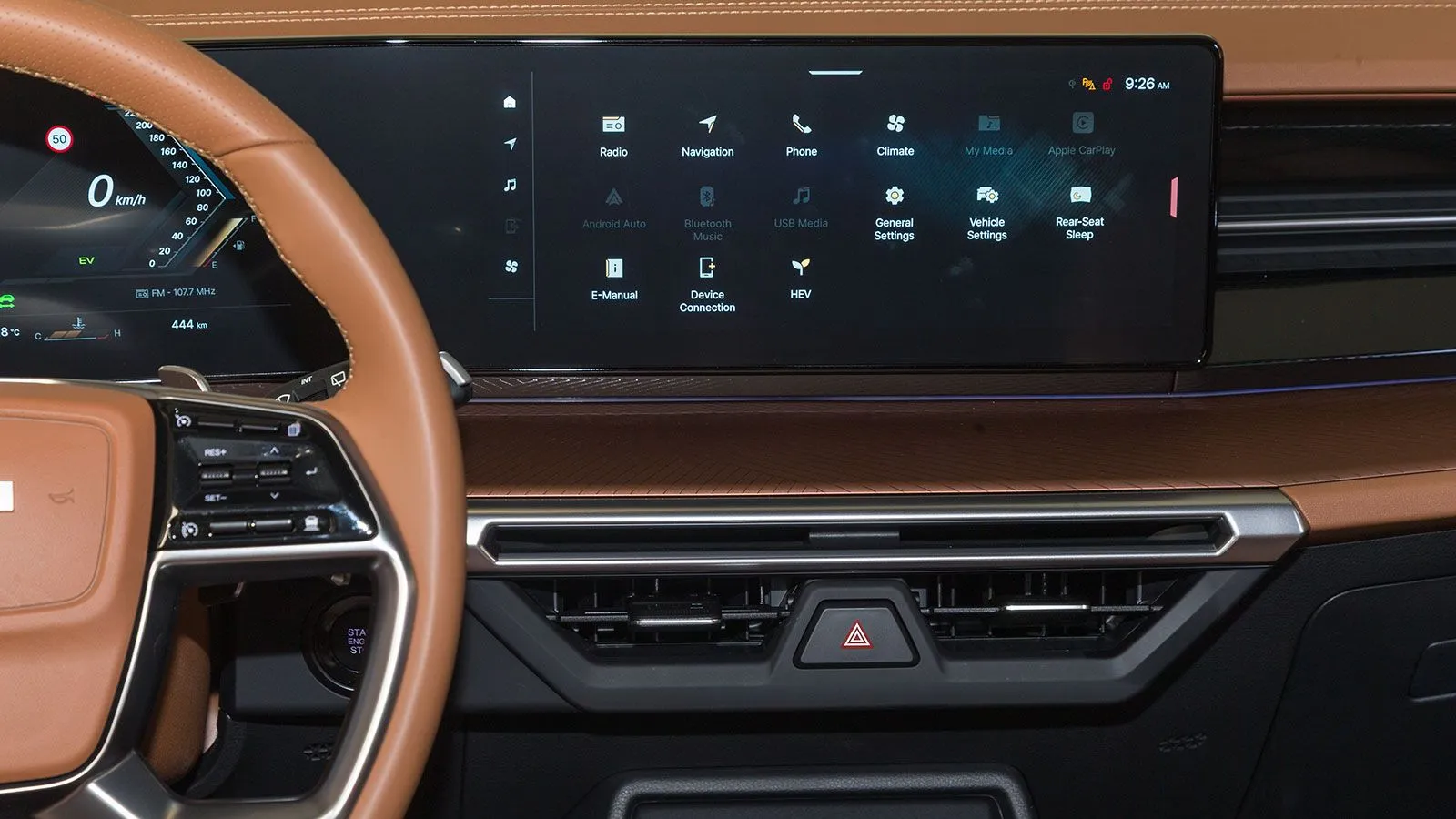Στην καμπίνα κυριαρχεί ένα μακρύ, οριζόντιο πάνελ, που ενώνει τον ψηφιακό πίνακα οργάνων και την οθόνη πολυμέσων, αμφότερες 12,3 ιντσών. Το σύστημα infotainment είναι σύγχρονο και με ευκρινή απεικόνιση, αν και χρειάζεται λίγη εξοικείωση προκειμένου να περιηγηθεί κανείς γρήγορα στα μενού, ειδικά λόγω της απουσίας φυσικών κουμπιών. Μετά από λίγο, πάντως, οι βασικές λειτουργίες –όπως ο έλεγχος του κλιματισμού– γίνονται εύκολες στη χρήση. Το σύστημα υποστηρίζει πλήρη συνδεσιμότητα με smartphone, διαθέτει χάρτες πλοήγησης και ενημερώνει τον οδηγό για όλες τις σημαντικές παραμέτρους του υβριδικού συστήματος, όπως τη ροή ενέργειας.
