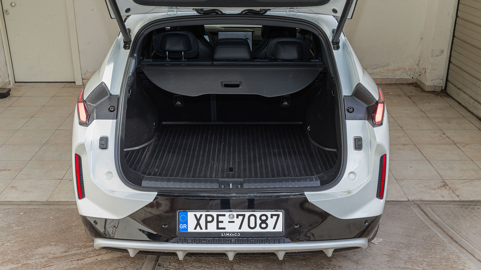 Στο εσωτερικό του Lynk & Co 08, οι χώροι για πέντε επιβάτες είναι άφθονοι. Ένα άτομο μέσου ύψους που κάθεται στα πίσω καθίσματα θα έχει περίπου 20 εκ. ελεύθερου χώρου μπροστά από τα γόνατά του, ενώ το συνολικό πλάτος των τριών θέσεων φτάνει τα 1,43 μέτρα, επιτρέποντας χωρίς πρόβλημα τη φιλοξενία τριών ενηλίκων. Παρόλα αυτά, η κλίση της οροφής μειώνει λίγο τον χώρο πάνω από το κεφάλι τους (4,5 εκ.), αν και αυτό θα απασχολήσει μόνο τους πολύ ψηλούς. Το πορτμπαγκάζ των 540 λίτρων μπορεί να μην είναι το μεγαλύτερο στην κατηγορία, αλλά προσφέρει χώρους για τις αποσκευές όλων όσων θα χωρέσει.