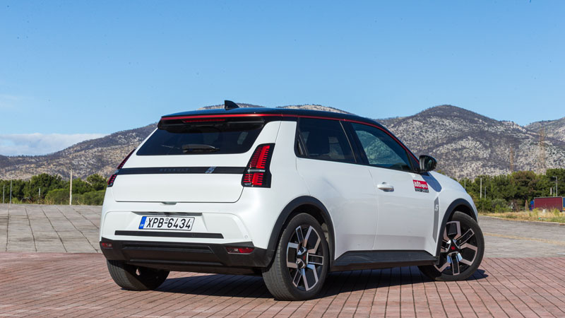 Στο πίσω μέρος μπορούμε πάλι να βρούμε παραλληλισμούς με τα Renault 5 του παρελθόντος. Τα φανάρια είναι όρθια και ενώνονται μέσω μιας μαύρης οριζόντιας ρίγας που φέρει ολογράφως το όνομα της Renault και δίπλα έχει τον αριθμό «5». Μόνο η πινακίδα έχει πλέον μετακομίσει στον προφυλακτήρα, αφήνοντας την πόρτα του χώρου αποσκευών «καθαρή», κάτι που μπορεί να φέρει στο νου θύμισες από το στυλ βελτίωσης στα τέλη των 90s.