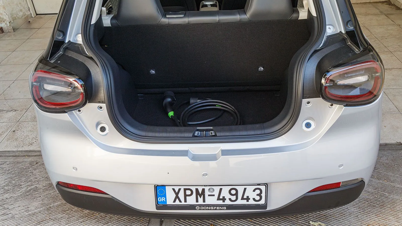 Περνώντας στο εσωτερικό του, αν και οι απαιτήσεις είναι μικρές για ένα μικρό αυτοκίνητο, καταφέρνει να ξεχωρίσει. Γενικότερα, η καμπίνα από την πρώτη στιγμή μεταφέρει αίσθηση «άπλας», κάτι που αποτυπώνεται και στις μετρήσεις. Προσφέρει τον περισσότερο χώρο πάνω από το κεφάλι (7,5 εκ.) των πίσω επιβατών, αλλά και το φαρδύτερο πίσω κάθισμα (1,34 μ.) στην κατηγορία. Ταυτόχρονα, ο χώρος μπροστά από τα γόνατά τους και η χωρητικότητα του πορτμπαγκάζ (326 λτ.) απέχουν ελάχιστα από τις κορυφαίες τιμές. Θα λέγαμε, λοιπόν, πως αν όχι το πιο ευρύχωρο, πρόκειται στα σίγουρα για ένα από τα πιο ευρύχωρα μικρά ηλεκτρικά.