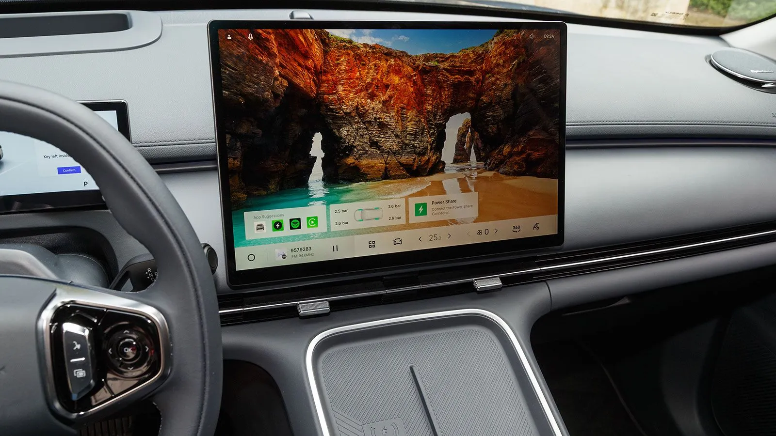 Η εισαγωγική έκδοση του Geely Starray EM-i με την μικρότερη διαθέσιμη μπαταρία είναι η Pro, η οποία ήδη εντυπωσιάζει με την πληρότητα του εξοπλισμού για την τιμή του. Ξεκινώντας από το ψηφιακό περιβάλλον, μας είναι ήδη γνωστό από το EX5. Περιλαμβάνει τον ψηφιακό πίνακα οργάνων LCD των 10,2 ιντσών, ενώ στο κέντρο του ταμπλό βρίσκεται μία μεγάλη οθόνη HD 15,4 ιντσών με δίκτυο 4G και συμβατή με τις σύγχρονες εφαρμογές συνδεσιμότητας.