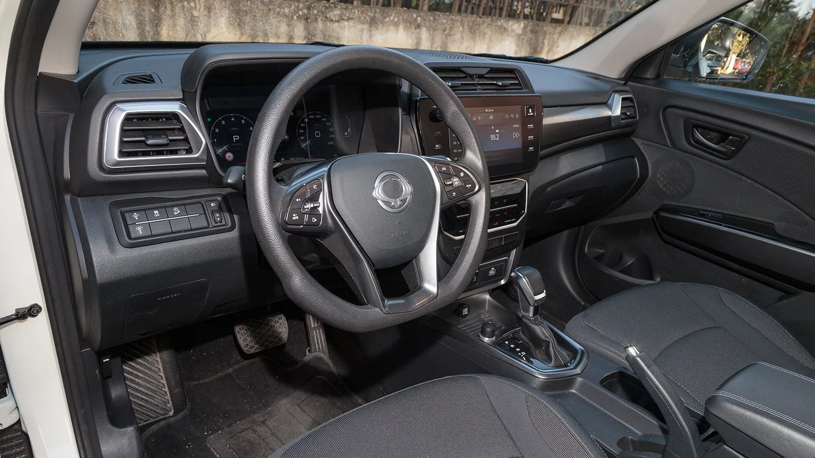 Στο εσωτερικό, το KGM Tivoli ακολουθεί την ίδια λογική που χαρακτηρίζει και την εξωτερική του εμφάνιση, δίνοντας έμφαση στη λειτουργικότητα και την ουσία. Η σχεδίαση του ταμπλό είναι απλή και καθαρή, με οριζόντιες γραμμές που ενισχύουν την αίσθηση πλάτους και συμβάλλουν σε άνετο περιβάλλον για τους επιβάτες. Η γενικότερη αρχιτεκτονική δεν προσπαθεί να εντυπωσιάσει με περιττές σχεδιαστικές ακρότητες, αλλά επικεντρώνεται στην εργονομία και την ευκολία χρήσης.
